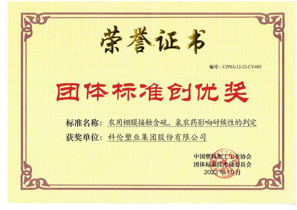 2016年12月 科倫公司成為中國(guó)農(nóng)膜行業(yè)十強(qiáng)企業(yè)
