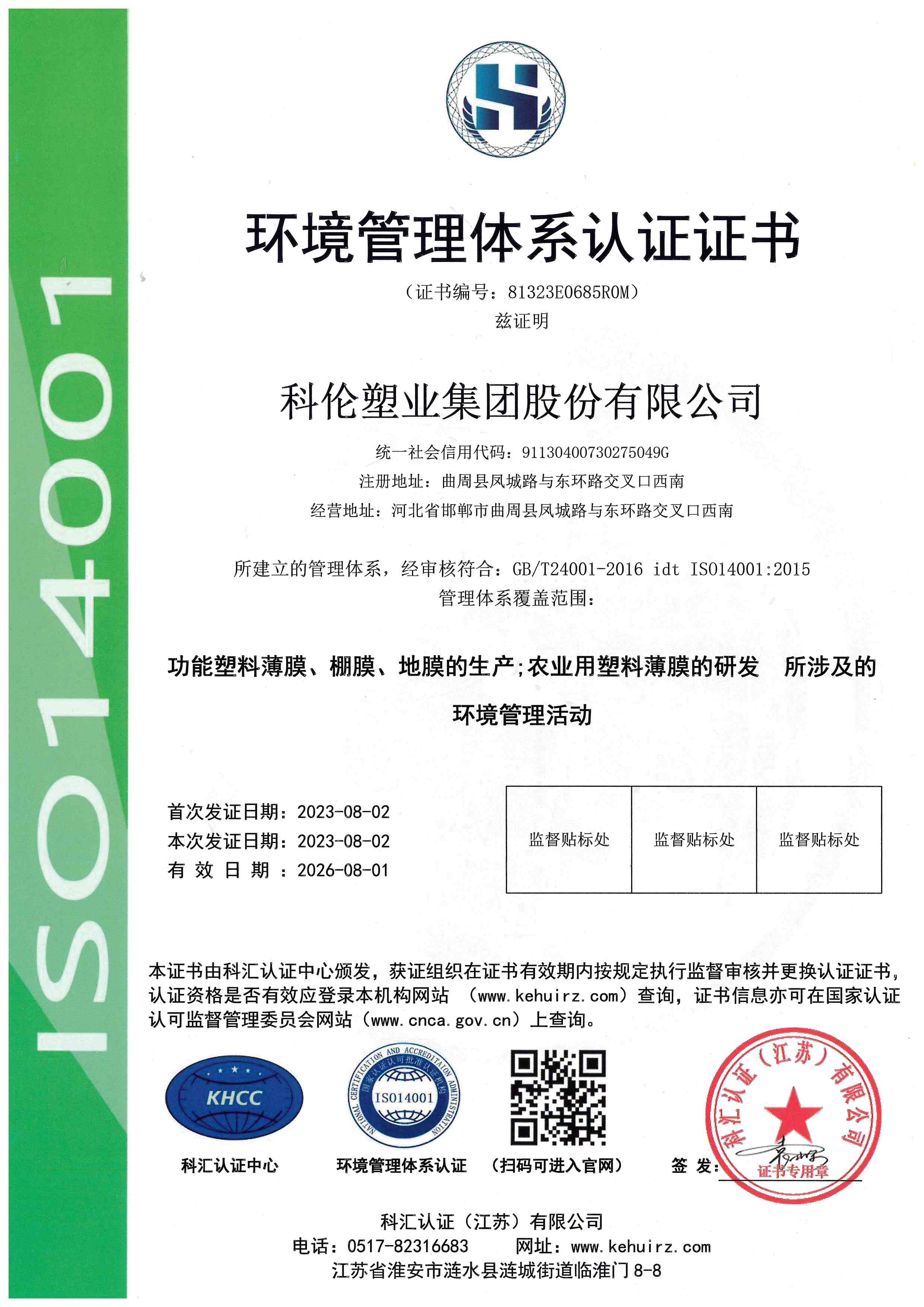 2014年7月 完成股份制改造,成立河北科倫塑料科技股份有限公司